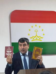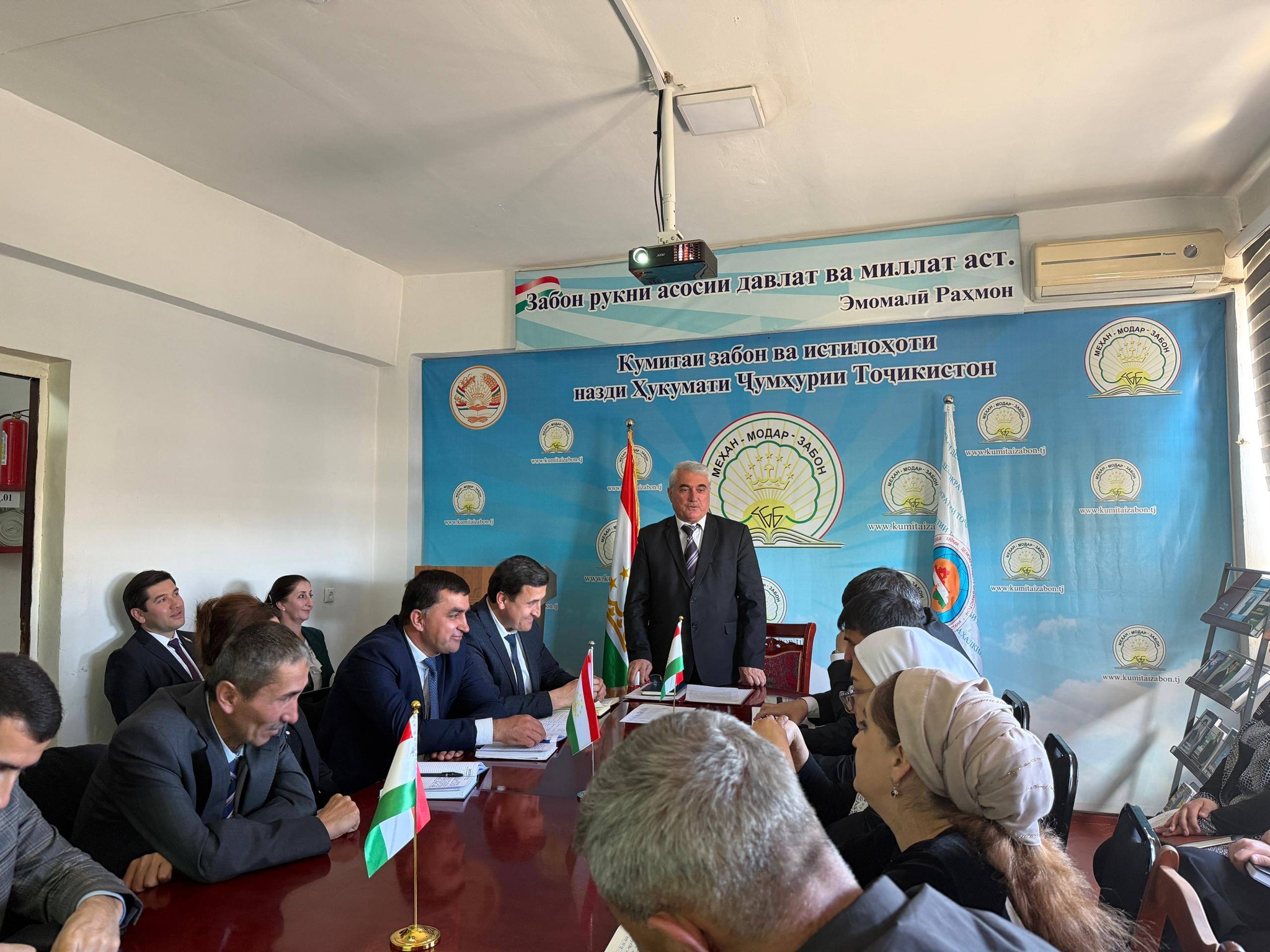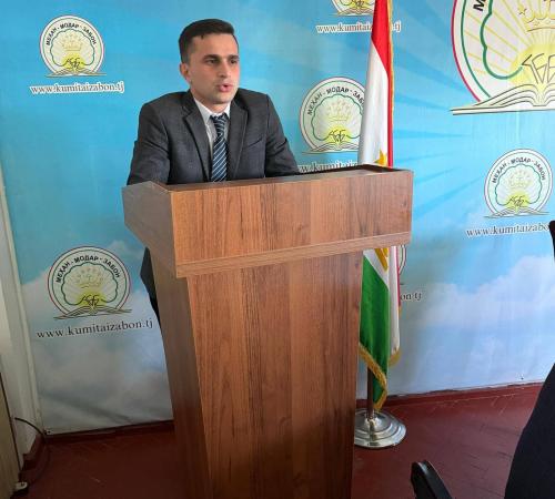 Дар мизи мудаввар раиси Кумитаи забон ва истилоҳот Сахидод Раҳматуллозода, муовини раиси Кумита Файзиддин Баротзода, директори Маркази миллии тарҷума, Ҳамрохон Дӯстзода, устодони Донишгоҳи давлатии омӯзгории Тоҷикистон ба номи Садриддин Айнӣ - д.и.ф., профессор Саъдӣ Қосимӣ ва н.и.ф., Саида Зайдуллозода ва кормандони Кумита ва зерсохторҳои он иштирок намуданд.