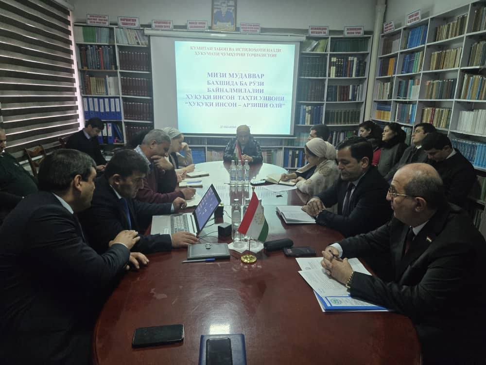 8 декабр дар Кумитаи забон ва истилоҳоти назди Ҳукумати Ҷумҳурии Тоҷикистон бахшида ба Рӯзи ҳуқуқи инсон (10 декабр) дар мавзуи «Ҳуқуқи инсон-арзиши олӣ» мизи мудаввар баргузор шуд.
