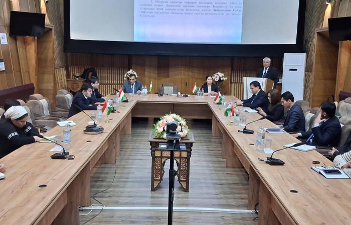 Дар мизи мудаввар раиси Кумитаи забон ва истилоҳот Сахидод Раҳматуллозода, муовини раиси Кумита Файзиддин Баротзода, директори Маркази миллии тарҷума, Ҳамрохон Дӯстзода, устодони Донишгоҳи давлатии омӯзгории Тоҷикистон ба номи Садриддин Айнӣ - д.и.ф., профессор Саъдӣ Қосимӣ ва н.и.ф., Саида Зайдуллозода ва кормандони Кумита ва зерсохторҳои он иштирок намуданд.
